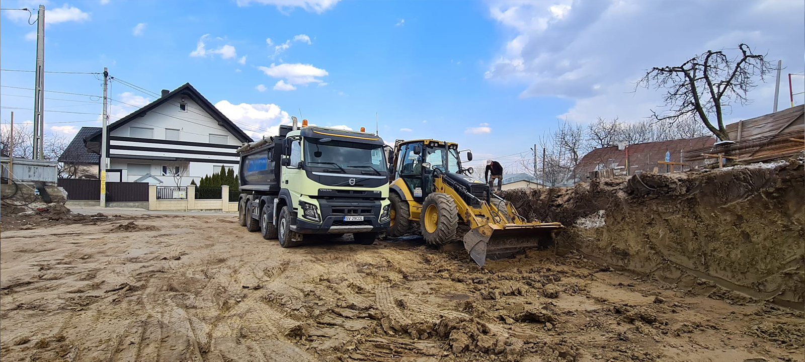 - amenajări terenuri, săpături fundații pentru construcții precum case, blocuri, hale, etc.;